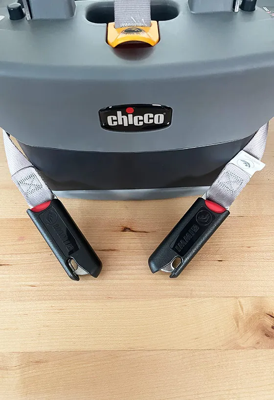 ISOFIX, LATCH. This system uses a belt and buckle, like a seat belt, that buckles to the vehicle's seat anchors. This is much easier to install and "feels" more secure when the buckles click in.