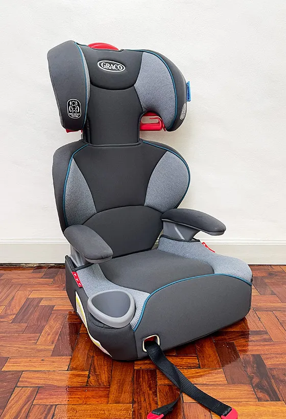 When your child is 7, or a big 6, they can move up to a booster. These should ideally be used by bigger kids because the seat belt is designed for an adult, the belt will be at their neck, that is not a good position.