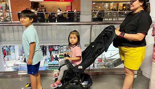 Comparing a full-size stroller, travel stroller and a jogger stroller.